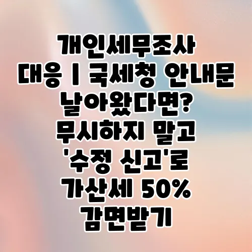 국세청의 개인세무조사 안내문을 받는 것은 많은 사람들에게 불안한 경험이 될 수 있습니다. 그러나 이 상황을 잘 대처하면 가산세를 감면받을 수 있는 기회를 놓치지 않을 수 있습니다. 이번 포스팅에서는 개인세무조사에 대한 이해와 함께 국세청 안내문을 받았을 때의 대응 방법, 수정 신고를 통해 가산세를 감면받는 절차에 대해 자세히 설명드리겠습니다. 그럼 시작해볼까요?