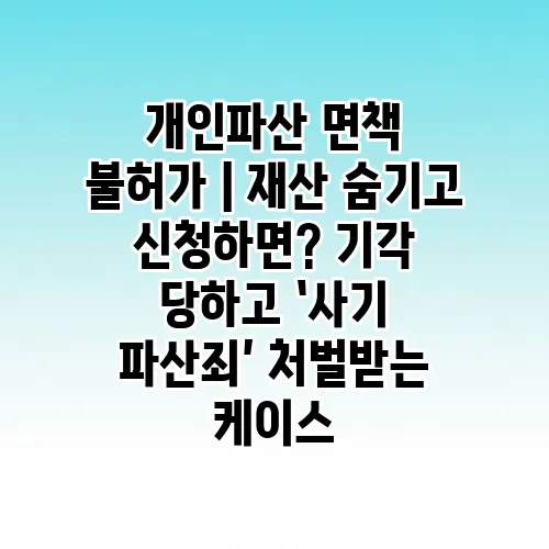 재산을 숨기고 개인파산을 신청할 경우, 법원에서 면책이 기각될 뿐만 아니라 사기 파산죄로 형사 처벌을 받을 수 있습니다. 이 경우 벌금형 또는 징역형에 처해질 수 있으며, 추가적으로 채무 변제 의무가 발생할 수 있습니다.