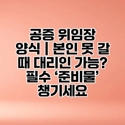 "'공증 위임장 양식'"과 "'공증 준비물'"을 꼼꼼히 챙기는 것은 성공적인 공증 절차의 핵심입니다. 특히,'본인 못 갈 때 대리인 가능', 그리고 '공증 절차', 를 원활하게 진행하려면 사전 준비와 세심한 검토가 필요하다는 점을 잊지 마세요. 처음엔 조금 복잡하게 느껴질 수도 있지만 차근차근 따라가면 누구든 자신만의 완벽한 공증 경험을 만들 수 있습니다."