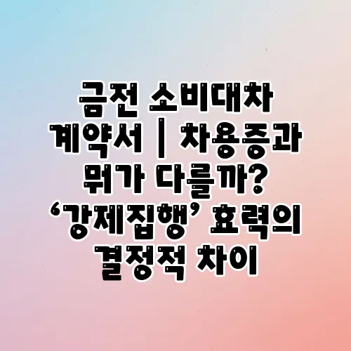 금전 소비대차 계약서는 당사자 간의 금전 거래 내용을 법적 효력을 갖도록 명확히 기록하는 계약서로, 강제집행 가능성을 높이기 위해 작성됩니다. 반면 차용증은 단순히 빌린 금액과 상환 조건을 적은 문서로, 법적 강제집행력이 약하거나 불확실할 수 있습니다.