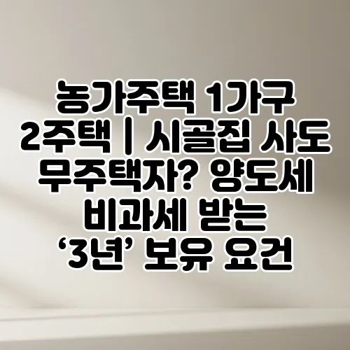 농가주택 1가구 2주택|시골집 사도 무주택자? 양도세 비과세 받는 ‘3년’ 보유 요건