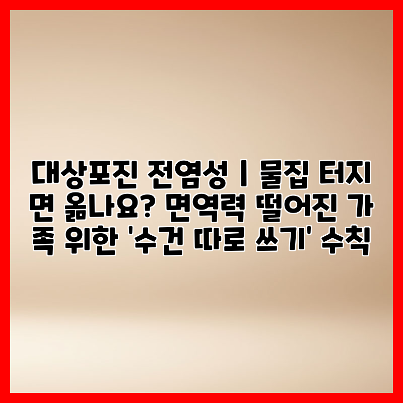 대상포진 전염성|물집 터지면 옮나요? 면역력 떨어진 가족 위한 ‘수건 따로 쓰기’ 수칙이라는 제목으로, 평소 가정에서 바로 적용할 수 있는 실전 팁과 이유를 중심으로 설명할게요. 대상포진은 누구나 이름은 들어봤지만, 실제로 가족 중 누군가 환자일 때 어떻게 행동해야 할지 혼란스러운 경우가 많아요. 특히 면역력이 약한 부모님이나 갓난아기, 항암 치료 중인 가족이 있다면 더 신경 쓰이죠. 이 글에서는 전염 경로와 위험 시점, ‘수건 따로’ 실전 수칙, 생활 속 소독과 세탁 방법, 치료 시 주의사항, 실제 사례별 대응까지 차근차근 정리해볼게요.