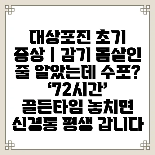 대상포진은 많은 사람들이 간과할 수 있는 질병입니다. 감기 몸살처럼 느껴지지만, 초기 증상을 인지하지 못하면 큰 피해를 입을 수 있습니다. 특히 대상포진 초기 증상을 조기에 발견하는 것이 중요하며, 이를 통해 신경통 예방에 도움을 줄 수 있습니다. 오늘은 대상포진의 초기 증상, 골든타임, 그리고 치료 방법에 대해 자세히 알아보겠습니다.