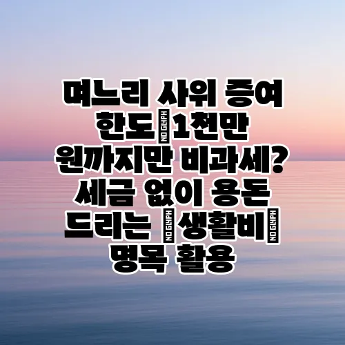 안녕하세요! 오늘은 며느리와 사위에게 증여할 때 유용한 정보에 대해 알아보겠습니다. 특히, 며느리 사위 증여의 비과세 한도와 관련하여 세금 없이 용돈을 드릴 수 있는 방법에 대해 자세히 설명드릴게요. 이 글을 통해 비과세 한도와 생활비 명목 증여의 개념을 쉽게 이해하고, 실질적으로 활용할 수 있는 방법들을 배워보시길 바랍니다.