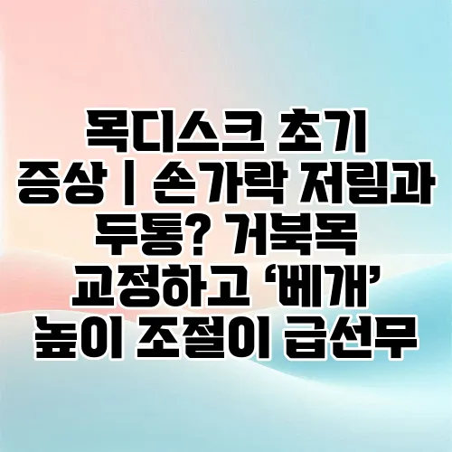 안녕하세요! 오늘은 많은 분들이 겪고 있는 목디스크 초기 증상에 대해 이야기해 보려고 합니다. 손가락 저림과 두통 같은 증상은 목디스크와 관련이 있을 수 있습니다. 특히 요즘은 스마트폰 사용으로 인해 거북목 증후군이 심각해지고 있는데, 이를 교정하는 방법과 함께 베개 높이를 조절하는 것이 얼마나 중요한지에 대해서도 다룰 예정입니다. 그럼 함께 알아보시죠!
