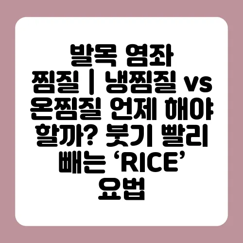 발목 염좌는 일상생활에서 자주 발생하는 부상 중 하나입니다. 특히 운동 중이나 급하게 움직일 때 발목을 잘못 접지면 쉽게 발생할 수 있습니다. 이러한 발목 염좌를 치료하기 위해서는 적절한 찜질 방법과 RICE 요법을 아는 것이 중요합니다. 냉찜질과 온찜질의 차이를 이해하고, 언제 어떤 방법을 사용하는 것이 가장 효과적인지 알아보겠습니다. 또한, 붓기를 빨리 제거하는 방법에 대해서도 자세히 설명드릴 것입니다.