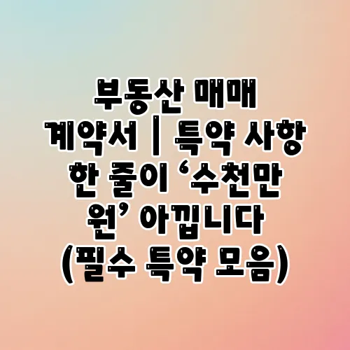📺 "부동산 매매 계약서|특약 사항 한 줄이 ‘수천만 원’ 아낍니다 (필수 특약 모음)"에 대해 알아보기!