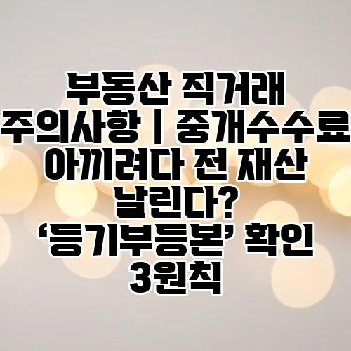 부동산 직거래는 많은 사람들이 중개수수료를 절약하고자 선택하는 방법입니다. 그러나 이 과정에서 발생할 수 있는 여러 가지 위험 요소에 대해 충분히 인지하지 못하는 경우가 많습니다. 오늘은 부동산 직거래 시 주의해야 할 사항과 특히 등기부등본 확인의 중요성에 대해 자세히 알아보겠습니다. 이 글을 통해 여러분의 소중한 자산을 지키는 데 도움이 되기를 바랍니다.