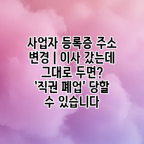 사업자 등록증상의 주소를 이사 후 변경하지 않으면, 세무서와의 연락이나 우편 수신에 문제가 생기고, 관련 법령에 따라 직권 폐업 조치가 내려질 수 있습니다. 또한, 세금 신고나 각종 행정처리에 불이익이 발생할 수 있으니 반드시 주소 변경 신고를 해야 합니다.