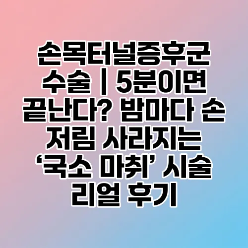 손목터널증후군 수술|5분이면 끝난다? 밤마다 손 저림 사라지는 ‘국소 마취’ 시술 리얼 후기