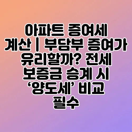 📺 "아파트 증여세 계산|부담부 증여가 유리할까? 전세 보증금 승계 시 ‘양도세’ 비교 필수"에 대해 알아보기!