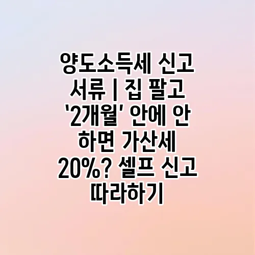 부동산을 팔고 나면 누구나 걱정하는 것이 바로 양도소득세 신고입니다. 특히, 집을 팔고 나서 2개월 이내에 신고를 하지 않거나 서류 준비가 미흡하면 가산세 부과라는 불이익이 기다리고 있어요. 오늘은 양도소득세 서류 준비부터 셀프 신고 방법까지, 차근차근 상세하게 안내드리겠습니다. 처음에는 복잡하게 느껴질 수 있지만, 친절한 설명과 함께 따라 하시면 어렵지 않게 처리하실 수 있습니다. 양도소득세 가산세의 위험성을 피하고 싶다면 지금부터 함께 살펴보시죠.