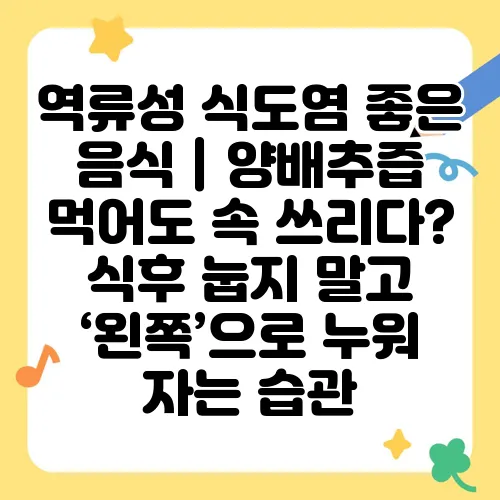 역류성 식도염은 많은 사람들이 겪는 불편한 질환입니다. 특히, 식후 눕지 말고 ‘왼쪽’으로 누워 자는 습관이 중요하다는 사실을 아시나요? 이번 포스팅에서는 역류성 식도염에 좋은 음식으로 알려진 양배추즙과 관련된 정보, 그리고 올바른 생활 습관에 대해 자세히 알아보겠습니다. 건강한 소화 시스템을 유지하기 위해 필요한 지식들을 함께 탐구해 보아요.