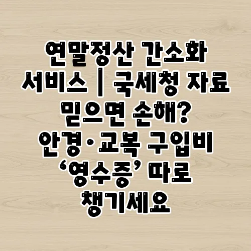 연말정산 시즌이 다가오면서 많은 분들이 국세청에서 제공하는 연말정산 간소화 서비스를 활용하고 계실 텐데요. 하지만 이 서비스만 믿고 영수증 챙기기를 소홀히 한다면 예상치 못한 손해를 볼 수도 있습니다. 특히 국세청 자료는 편리함을 제공하지만, 일부 항목에서는 별도로 영수증을 보관하는 것이 훨씬 유리할 때가 많습니다. 오늘은 왜 연말정산 간소화 서비스만으로는 부족한지, 그리고 안경 구입비, 교복 구입비 등 중요한 지출 항목들을 어떻게 꼼꼼히 챙겨야 하는지 자세하게 안내드리겠습니다. 함께 실속 있는 연말정산 준비를 시작해 볼까요?