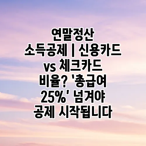 연말정산 소득공제|신용카드 vs 체크카드 비율? ‘총급여 25%’ 넘겨야 공제 시작됩니다