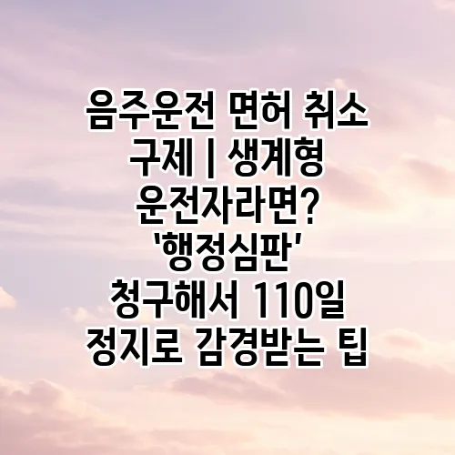 음주운전으로 인한 면허 취소는 많은 운전자들에게 큰 걱정거리가 될 수 있습니다. 특히 생계형 운전자의 경우, 이로 인해 경제적 어려움이 가중될 수 있습니다. 하지만 다행히도 행정심판 청구를 통해 면허 정지를 감경받을 수 있는 방법이 존재합니다. 이번 포스팅에서는 음주운전 면허 취소 구제에 대해 자세히 알아보고, 생계형 운전자가 어떻게 행정심판을 청구하여 110일로 면허 정지를 줄일 수 있는지에 대한 팁을 공유하겠습니다.