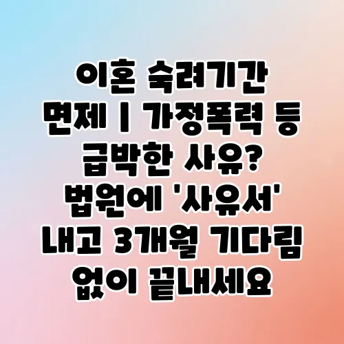 가정폭력과 같은 급박한 사유로 이혼 숙려기간을 면제받을 수 있나요?