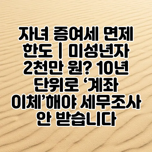 자녀에게 재산을 증여하는 일은 부모님이나 가족 모두에게 중요한 결정입니다. 특히 세금 문제는 누구에게나 부담스럽게 느껴질 수 있는데요, 오늘은 자녀 증여세와 관련된 핵심 포인트를 상세하게 살펴보겠습니다. 증여세 면제 한도는 얼마나 될지, 미성년자 증여 시 어떤 규정이 적용되는지, 그리고 세무조사를 피하려면 어떻게 계좌 이체 요건을 충족해야 하는지에 대해 알기 쉽게 설명드리려고 합니다. 자녀 증여를 계획하고 계시거나 관련 세금 전략을 고민 중인 분들에게 많은 도움이 되실 것입니다. 자, 그럼 함께 차근차근 알아보시죠.
