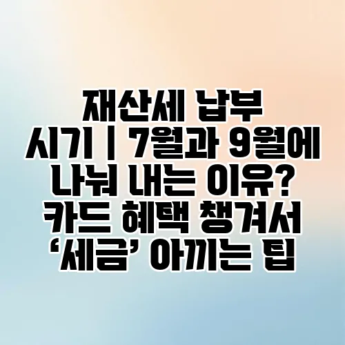 재산세는 많은 사람들이 매년 신경 써야 하는 중요한 세금 중 하나입니다. 특히, 재산세 납부 시기가 7월과 9월로 나뉘어 있는 이유를 이해하면, 세금 관리에 큰 도움이 될 수 있습니다. 또한, 카드 혜택을 활용하여 재산세 카드 혜택을 누리고, 이를 통해 세금을 아끼는 방법도 알아보겠습니다. 이 글을 통해 세금 절약 전략과 더불어 재산세 납부 방법에 대해 자세히 살펴보겠습니다.