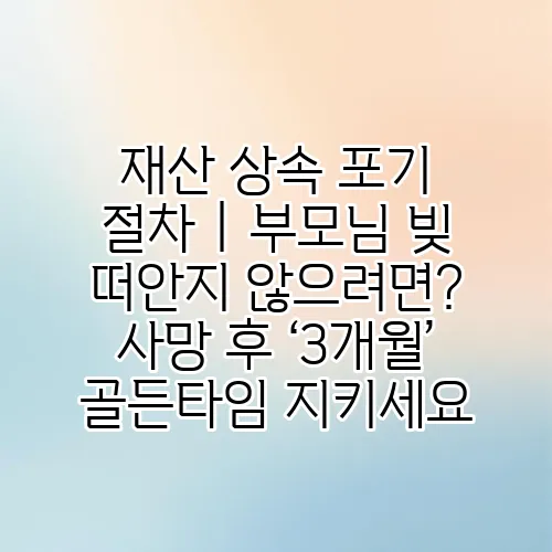 재산 상속은 많은 사람들에게 중요한 이슈이지만, 동시에 복잡하고 어려운 절차로 느껴질 수 있습니다. 특히 부모님께서 돌아가신 후, 남은 재산과 빚 문제를 어떻게 처리해야 할지 막막한 경우도 많지요. 오늘은 재산 상속 포기에 대한 상세한 안내와 함께 상속 포기 절차, 그리고 부모 빚 상속을 피하는 방법, 그리고 꼭 지켜야 하는 3개월 상속 기한에 대해 깊이 있게 살펴보겠습니다. 이러한 내용을 이해하면, 만약의 상황에서도 빠르고 정확하게 대응할 수 있으며, 불필요한 부담과 손해를 줄일 수 있습니다. 시작하기 전에 한 가지 명심할 점은, 이 과정이 처음에는 어렵게 느껴질 수 있지만 차근차근 따라가면 충분히 해결할 수 있다는 것임을 기억하세요.