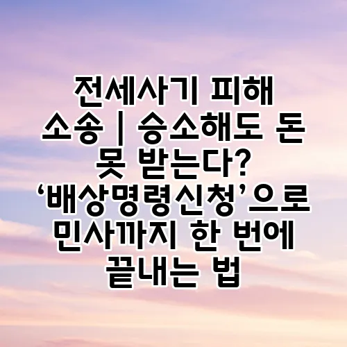 즉, 배상명령신청은 전세사기 피해 구제의 핵심 무기. 승소 후에도 ‘돈’을 실질적으로 확보하는 가장 효과적인 방법임을 기억하세요.