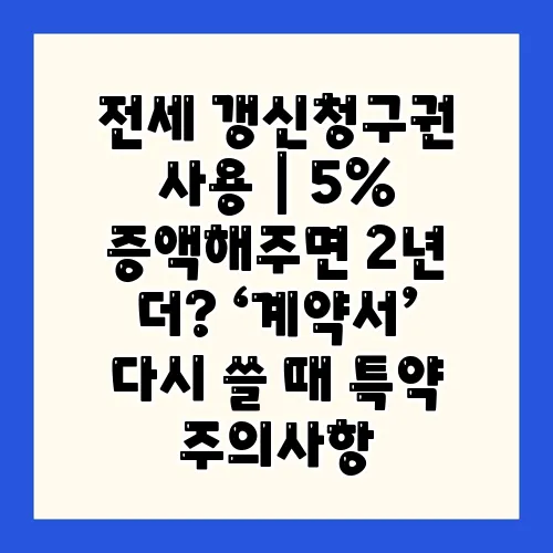 전세 갱신청구권은 임차인에게 매우 중요한 권리입니다. 특히 최근의 전세 시장에서 5% 증액의 조건으로 계약을 연장할 수 있는 가능성은 많은 사람들에게 큰 관심을 받고 있습니다. 오늘은 전세 갱신청구권의 사용 방법과 함께 계약서 작성 시 주의해야 할 특약에 대해 알아보겠습니다. 이 정보를 통해 여러분이 보다 나은 선택을 할 수 있도록 돕고자 합니다.