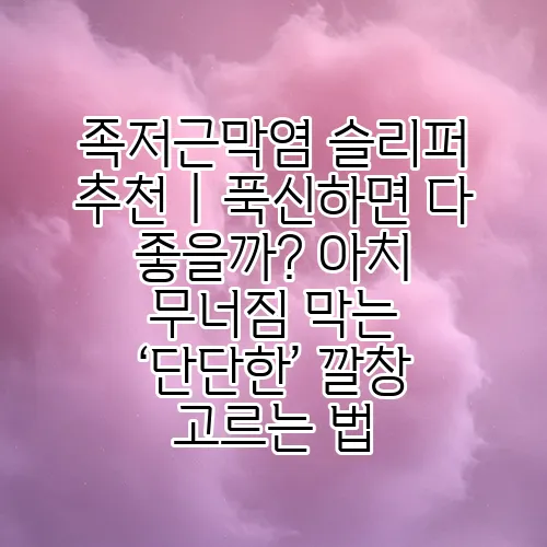 족저근막염에 좋은 슬리퍼는 아치 서포트가 잘 되어 있고, 쿠셔닝이 적절한 제품입니다. 특히, 단단한 깔창이 있어 발의 아치를 지지해 주는 것이 중요합니다. 또한, 미끄럼 방지 기능이 있는 슬리퍼를 선택하면 안전성도 높아집니다.