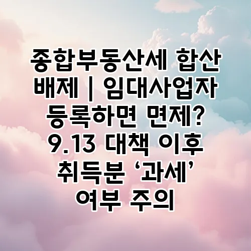 안녕하세요! 오늘은 종합부동산세와 관련된 여러 가지 궁금증을 풀어보려 합니다. 특히, 임대사업자 등록이 과연 면제 조건이 될 수 있는지에 대한 내용과 9.13 대책 이후의 과세 여부에 대해 알아보겠습니다. 이 글을 통해 여러분이 이해하기 쉽게 설명해 드릴 테니, 함께 탐구해 보도록 해요!