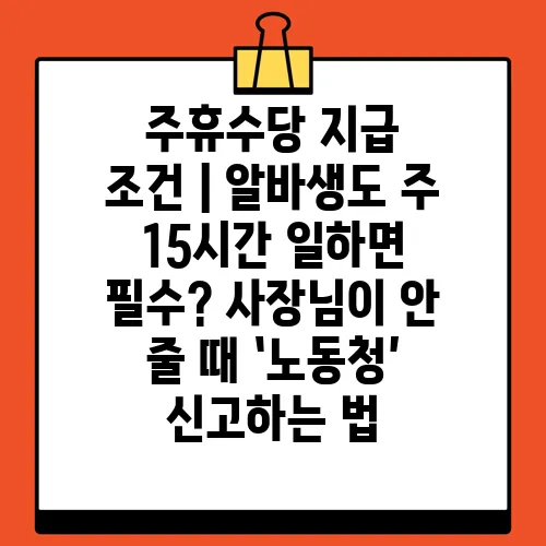 주휴수당 지급 조건|알바생도 주 15시간 일하면 필수? 사장님이 안 줄 때 ‘노동청’ 신고하는 법