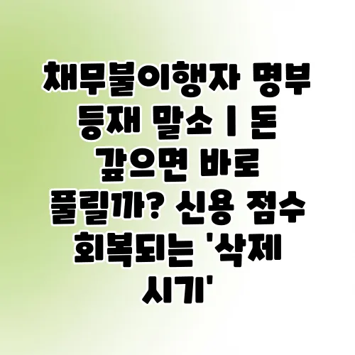 '돈만 갚았다고 바로 해결되지 않는다'. 사실, 채무를 모두 정산했다고 해서 즉시 '채무불이행자 명단 말소'나 '신용 점수 회복'가 이루어지는 것은 아닙니다. 반드시 일정 기간 기다려야 하며, 그동안 꾸준히 긍정적인 금융 습관을 유지하는 것이 중요합니다. 또한,여러 가지 조건 충족과 신청 절차를 거쳐야 한다는 점도 기억하세요.