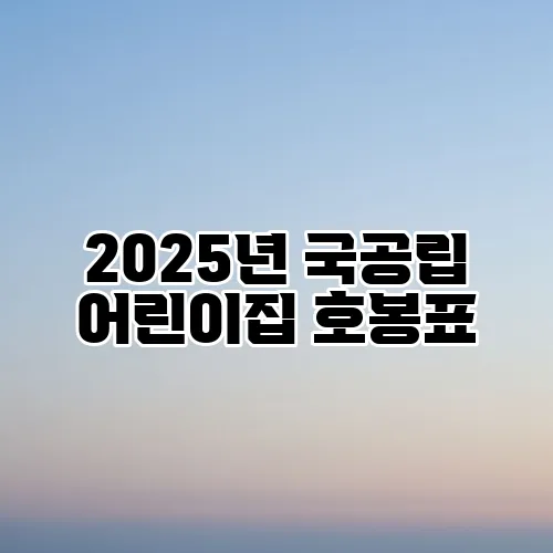 - 결론: 2025년 국공립 어린이집 보수 체계의 핵심 포인트와 전망